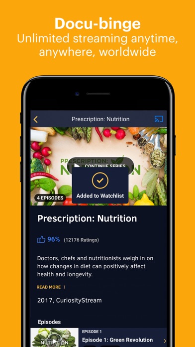 CuriosityStream is the world’s leading documentary and non-fiction streaming service covering science, nature, history, biographies of real characters of consequence and pretty much anything else you can think of. Learn about our natural world alongside luminaries like Sir David Attenborough. Look at our universe with wonder as Michio Kaku and Brian Greene broaden your perspective on space, time and the future. Step back in time and explore dinosaurs, ancient history, and the rise of homo sapiens. Curiositystream also offers CuriosityKIDS, a dedicated collection of safe, entertaining and inspiring programs for families to enjoy together or for kids to watch on their own. Let CuriosityKids spark a love of learning and a passion for exploration. Plus, all CuriosityStream shows are downloadable so you can keep kids entertained while on the go. Whether your kids are budding astronomers, paleontologists, or historians, CuriosityStream has got you covered with award-winning, ad-free content. Join more than 13 million CuriosityStream subscribers and explore thousands of brain-boosting documentaries. CuriosityStream membership benefits: - Unlimited streaming of the best in documentary programming - Download shows so you can watch anytime, anywhere without an internet connection - 4K and HD documentaries available on multiple devices - New content added weekly so you’ll never run out of things to watch - Browse titles with multiple search tools to help you quickly find your favorite subject areas - Rate your favorite shows and get recommendations for related content - Bookmark shows to watch later or resume watching previously viewed shows on other devices Memberships start at just $2.99 USD per month (plus applicable tax). You may cancel your membership and stop the billing anytime by logging into your account. Please Note: - Payment will be charged to the user's iTunes Account at confirmation of purchase -Subscription automatically renews unless auto-renew is turned off at least 24 hours before the end of the current period - Account will be charged for renewal within 24 hours prior to the end of the current period - Subscriptions may be managed by the user and auto-renewal may be turned off by going to the user's Account Settings after purchase By downloading this application, you agree to the CuriosityStream Terms of Use (https://curiositystream.com/terms) and Privacy Policy (https://curiositystream.com/privacy).