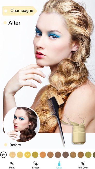 Hair Color Dye helps to change a brand new hair color in just seconds. All you have to do is select a photo, outline hair and then apply different hair colors. Once your hair makeover is complete, you can email the results to your friends, share on Facebook, or save it to your iPhone or iPad. MAIN FEATURES: - Super realistic hair coloring - Huge range of hair colors - Erase Tools - Redo and Undo Tools - easy to use and share